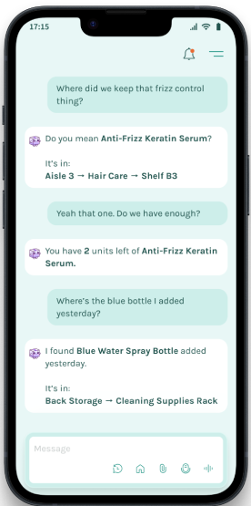 Spacium transforms inventory management for homes and SMBs using AI through simple conversations, local languages and images, making it accessible and efficient like larger enterprises.